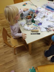 Pripravljati se začnemo že konec novembra in sicer z izdelavo voščilnic ali drugih darilc ter s ponavljanjem ali učenjem novih pesmic. Letos smo izdelali lične snežake iz nogavic, ki smo jih dobili v pletilstvu Jakopina in so bili industrijski odpadek zaradi napak pri proizvodnji.