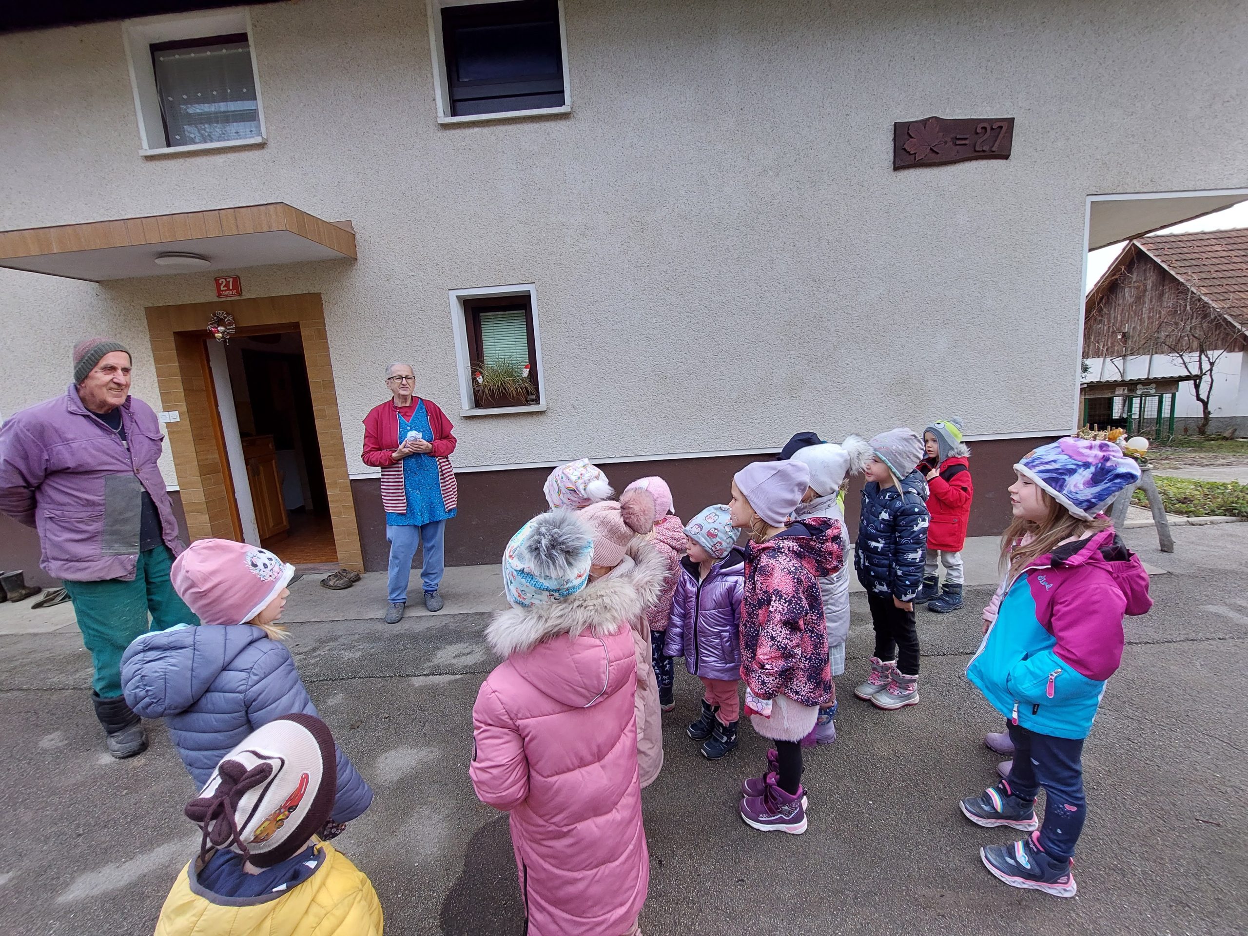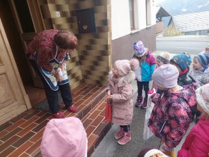 Ko smo imeli vse pripravljeno, smo se z veseljem odpravili po vasi. Otroci so kar tekmovali, kdo bo pozvonil, kdo bo izrekel voščilo, kdo bo izročil darilo…Peli smo seveda vsi in to glasno in korajžno.