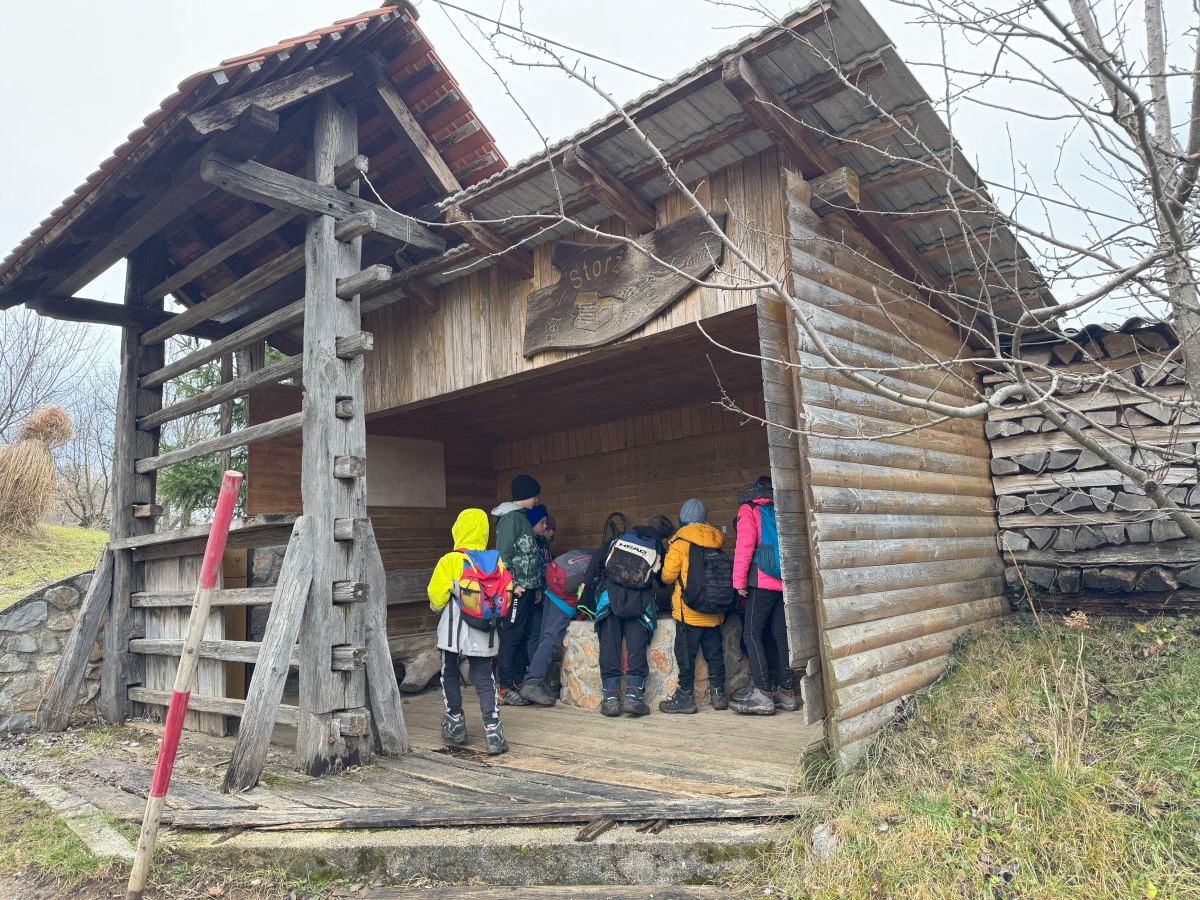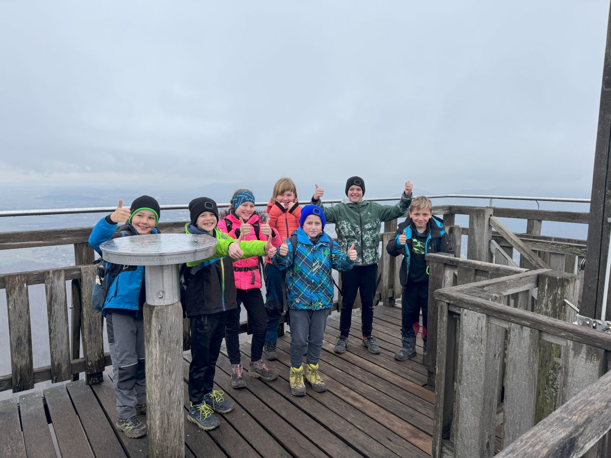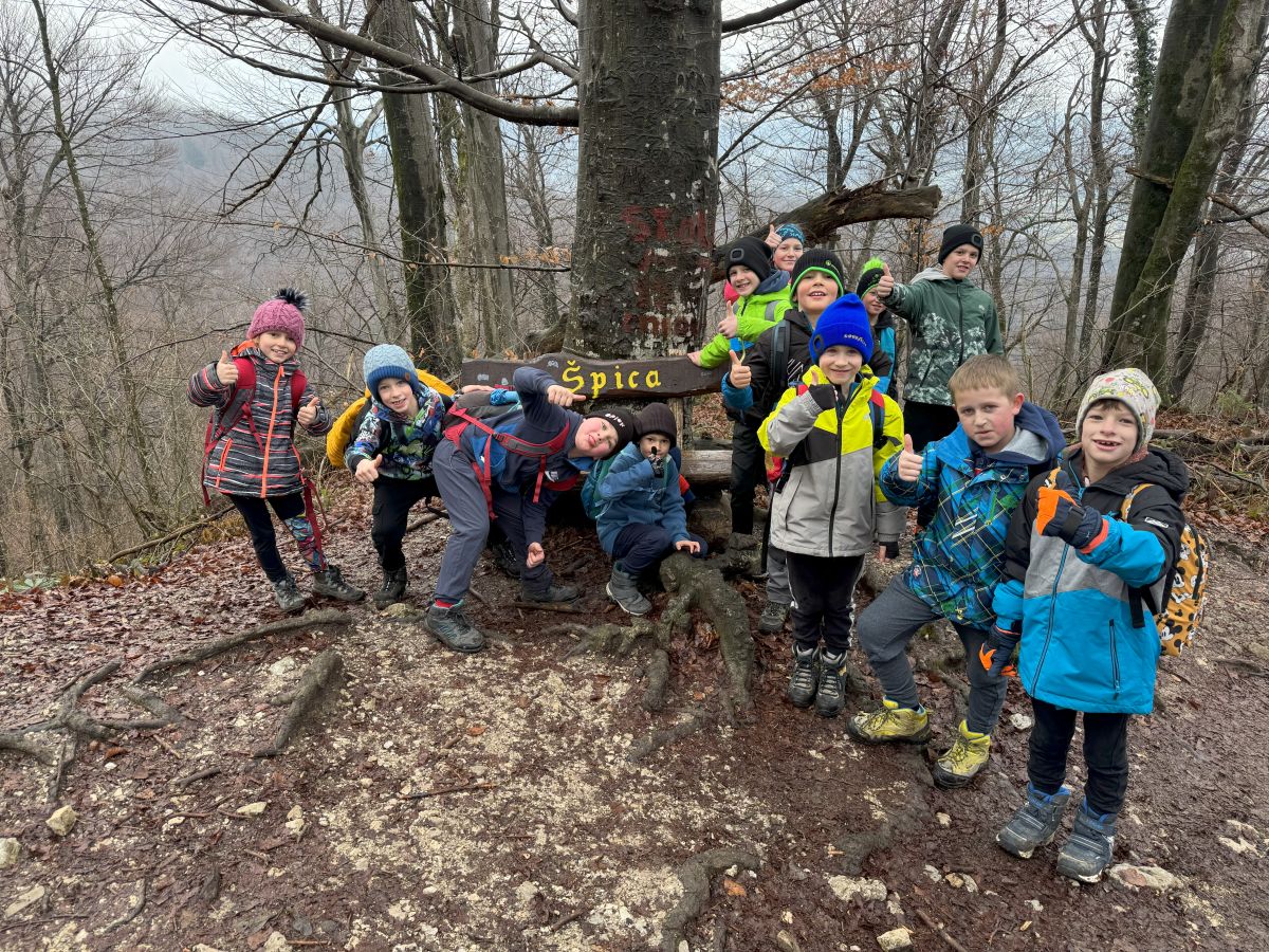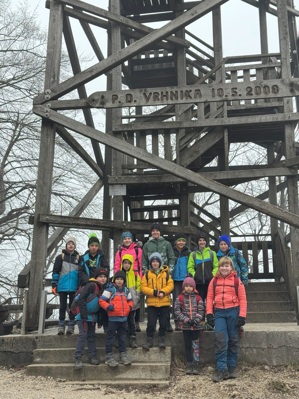 S Stare Vrhnike smo se podali v smeri »Čez špice«. Na poti nas je spremljala megla, ki pa je na stezicah med drevesi imela prav poseben čar. Po dobri uri in pol smo pred seboj zagledali opazovalni stolp in Kočo na Planini nad Vrhniko, ki je bila naš cilj. V koči so nas lepo sprejeli. Pojedli smo zasluženo malico, nekateri pa so se posladkali tudi s hišnimi dobrotami. Pred odhodom v dolino smo se povzpeli na razgledni stolp, visok kar 22 m, s katerega smo imeli razgled na mesto Vrhnika in gričevja zavita v meglice.