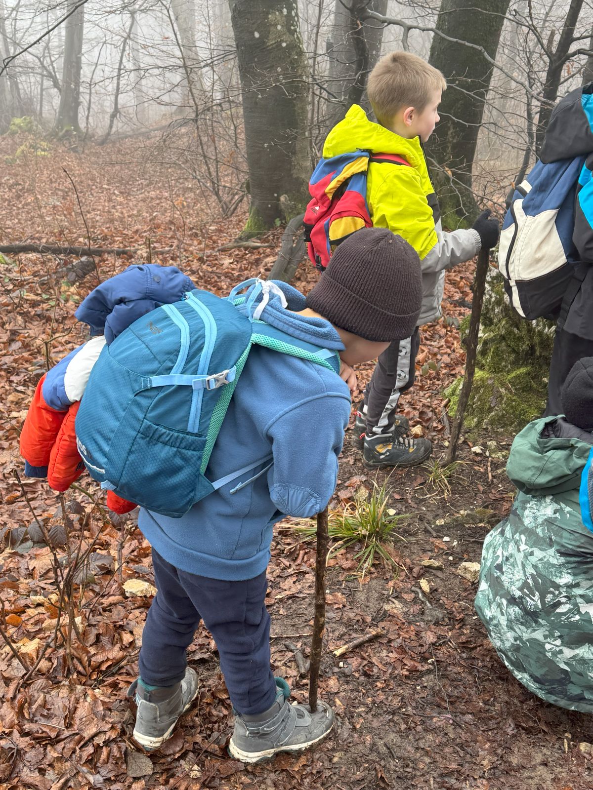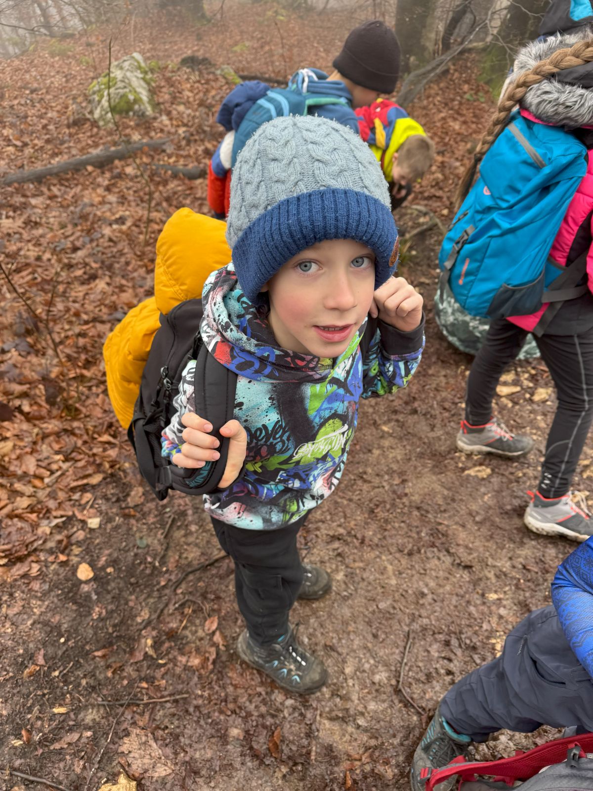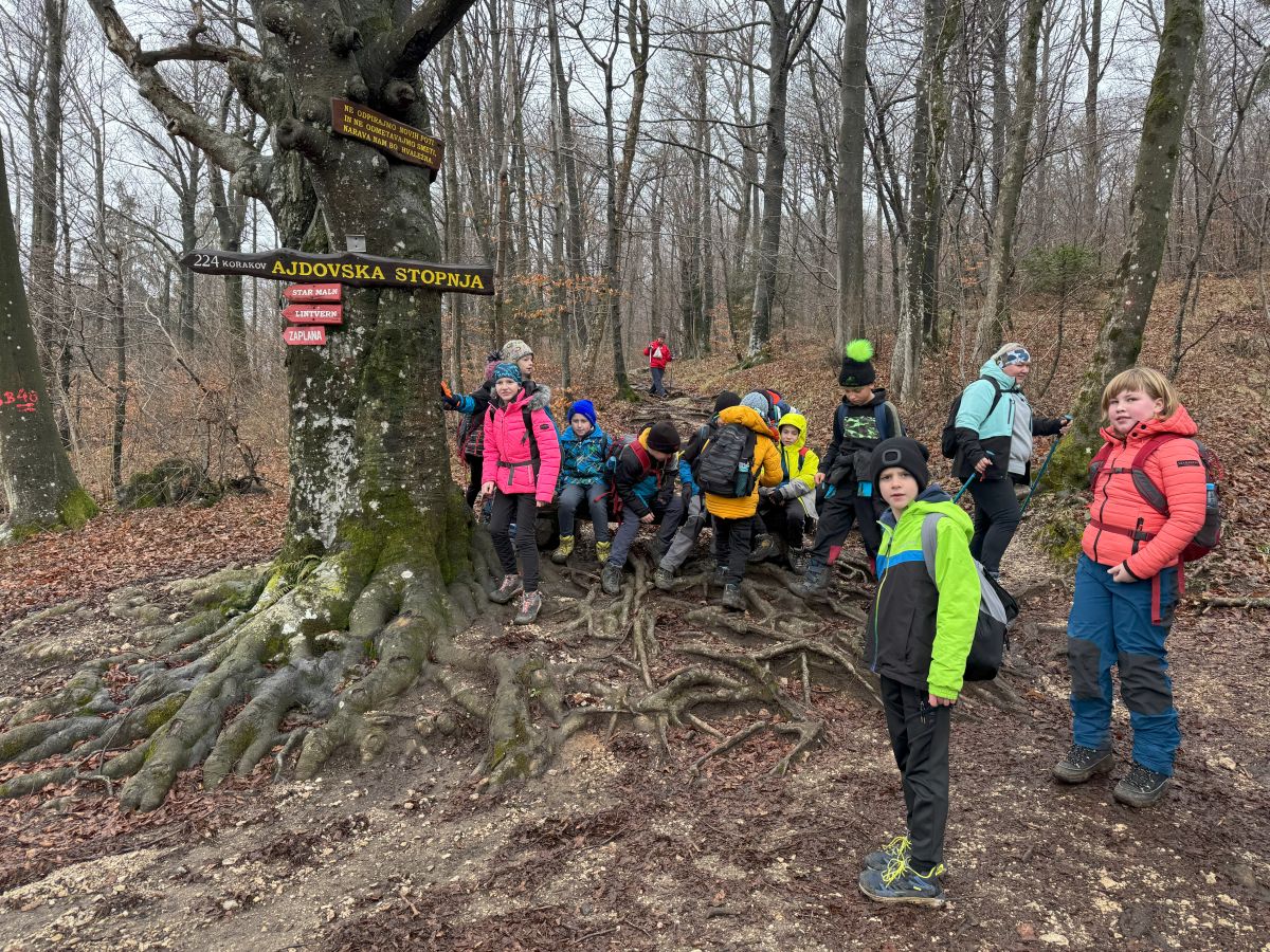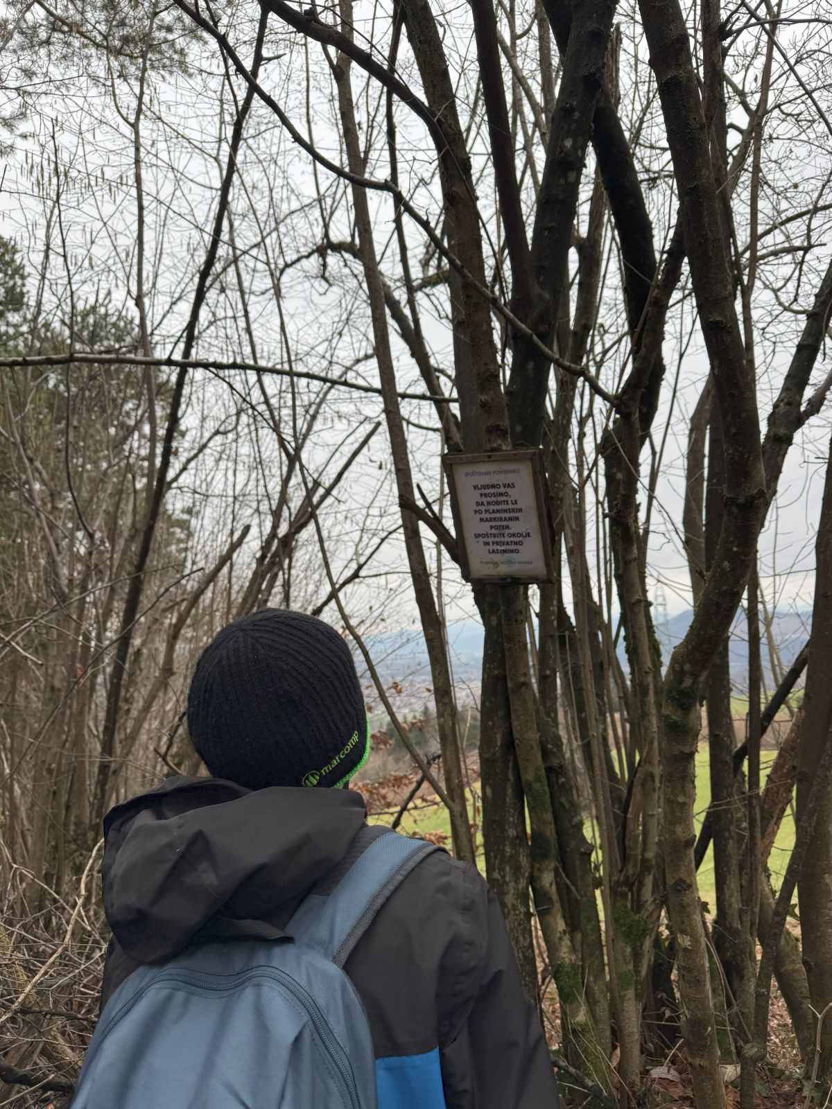 S Stare Vrhnike smo se podali v smeri »Čez špice«. Na poti nas je spremljala megla, ki pa je na stezicah med drevesi imela prav poseben čar. Po dobri uri in pol smo pred seboj zagledali opazovalni stolp in Kočo na Planini nad Vrhniko, ki je bila naš cilj. V koči so nas lepo sprejeli. Pojedli smo zasluženo malico, nekateri pa so se posladkali tudi s hišnimi dobrotami. Pred odhodom v dolino smo se povzpeli na razgledni stolp, visok kar 22 m, s katerega smo imeli razgled na mesto Vrhnika in gričevja zavita v meglice.