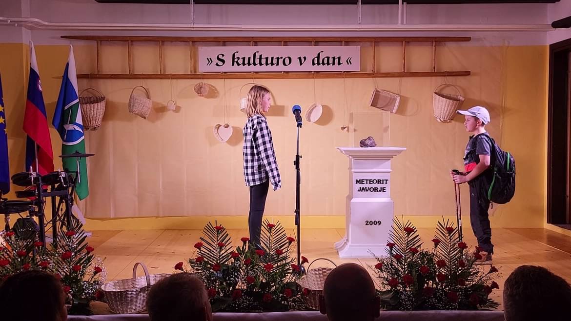 Letos je bila v Javorjah organizirana osrednja občinska prireditev ob slovenskem kulturnem prazniku. Z veseljem smo se odzvali na povabilo organizatorja. Učenci dramskega krožka so pripravili kratki predstavi. Prva je govorila o lepem vedenju, z drugo pa so vse obiskovalce povabili na pohod po Meteoritkovi poti.