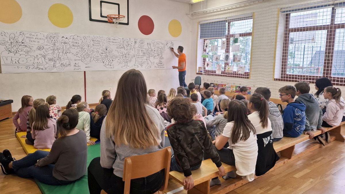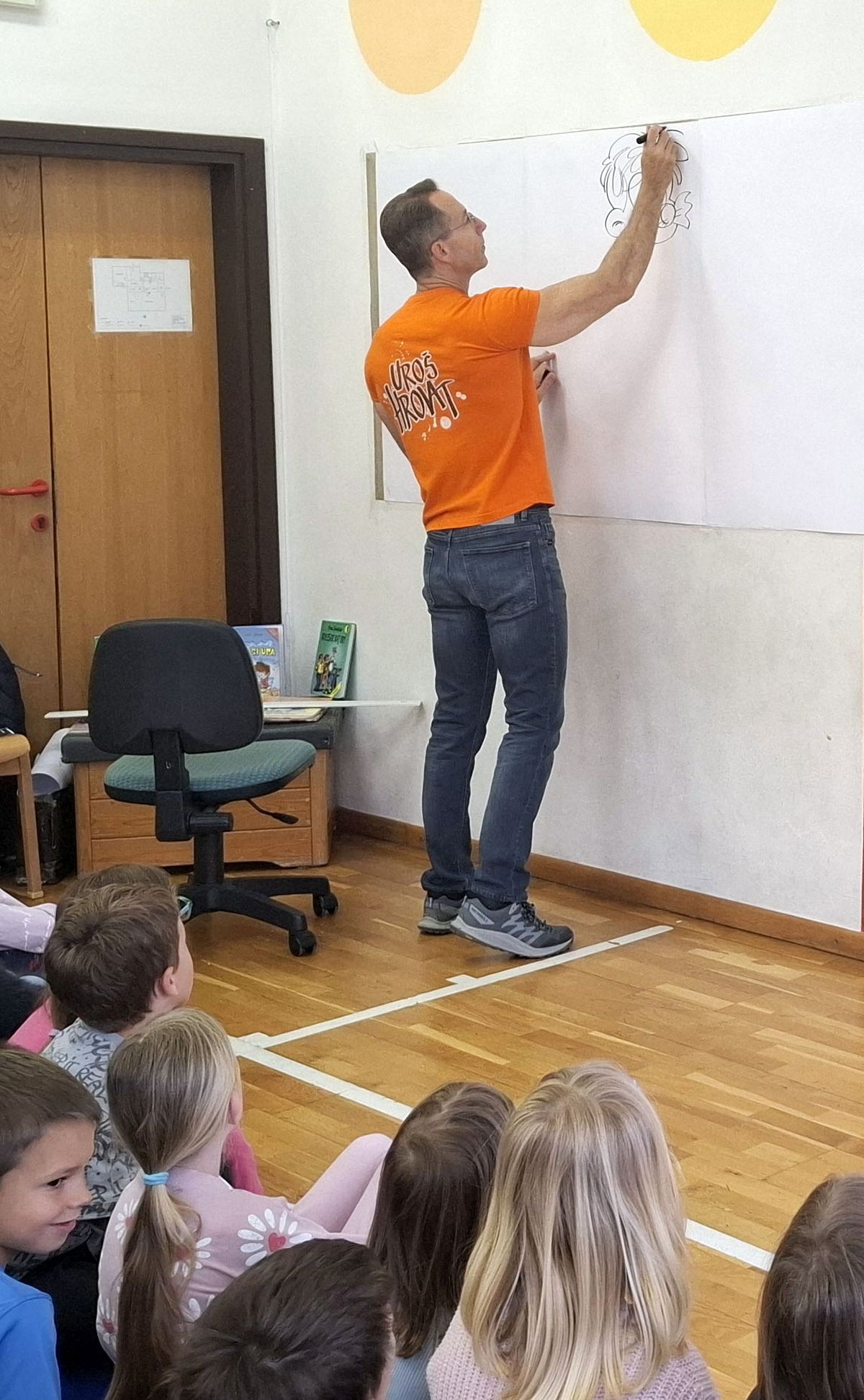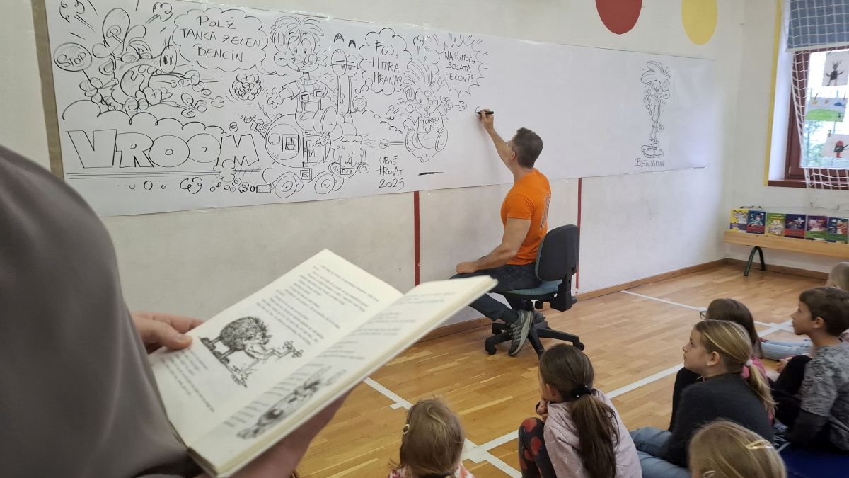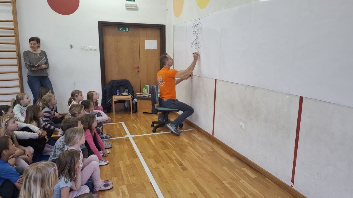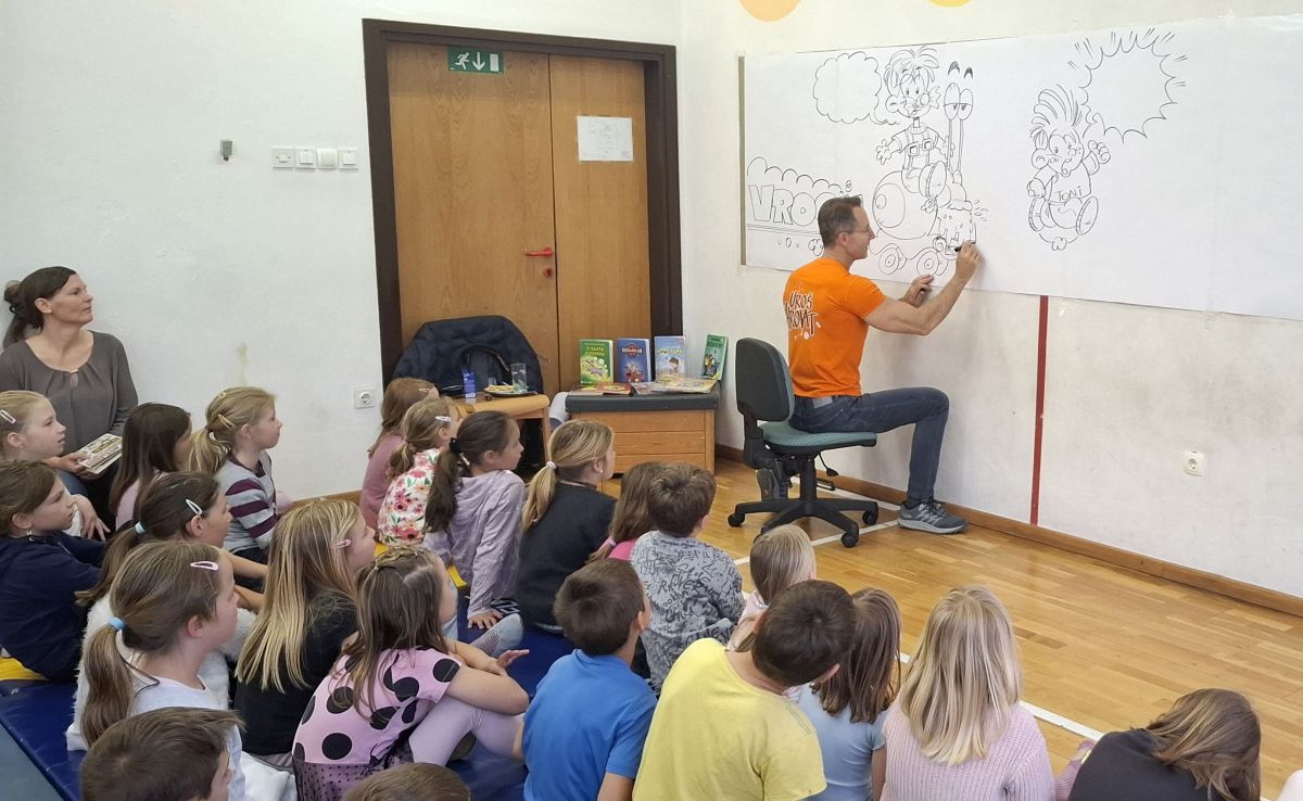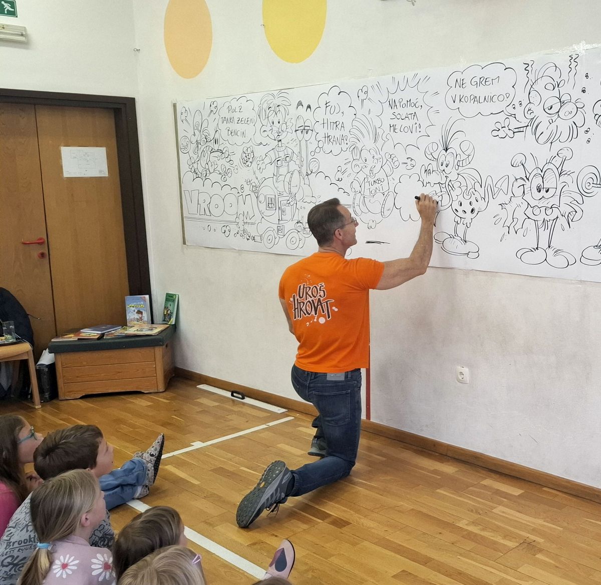 Učence, ki so uspešno zaključili bralno značko, je obiskal znani ilustrator Uroš Hrovat. Vse, kar je potreboval, je bil ogromen bel list papirja, črn flomaster in že so oživeli liki iz najrazličnejših zgodb. Gospod Hrovat je povedal, da je imel po več letih ustvarjanja za otroke že dovolj risanja prikupnih živalic in se je zato sam podal v pisateljske vode ter začel pisati zgodbe o stvareh, ki jih je želel risati. Prva izmed njegovih knjig je tako bila Zombi virus.