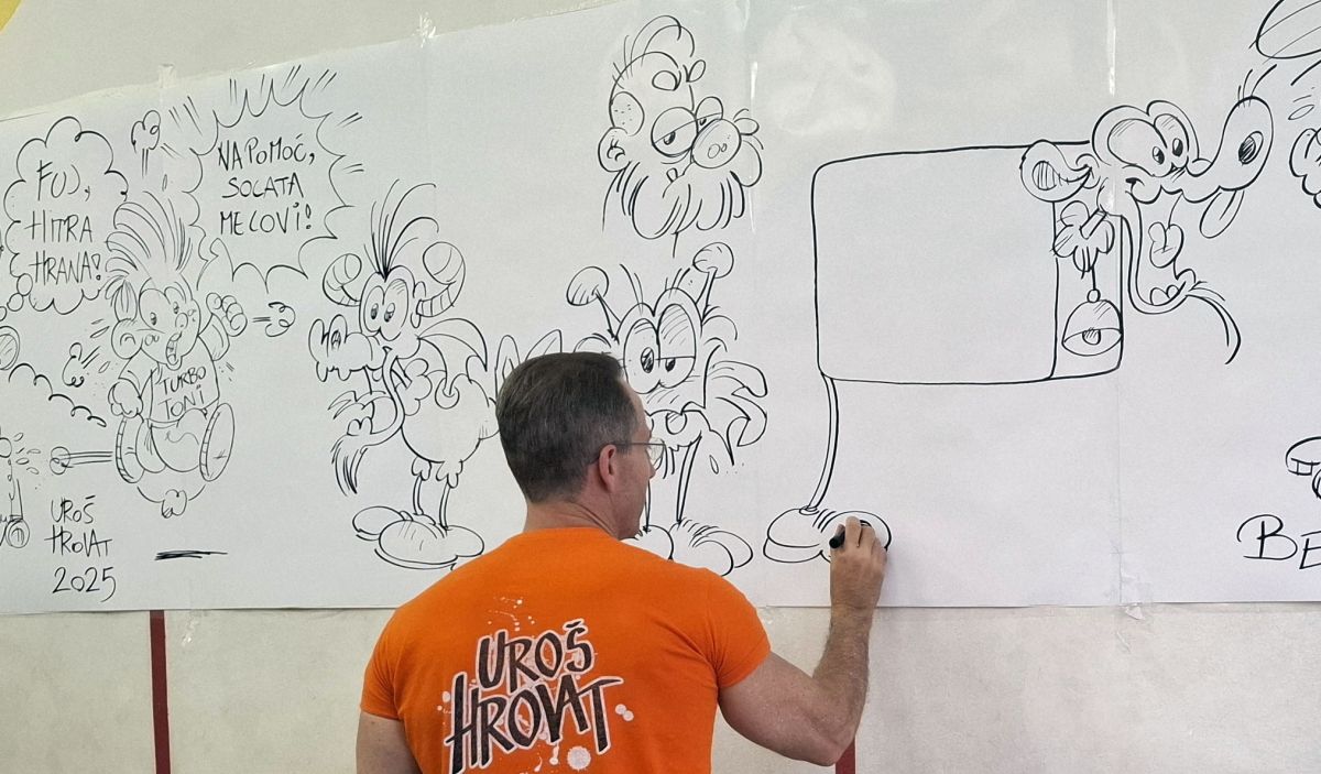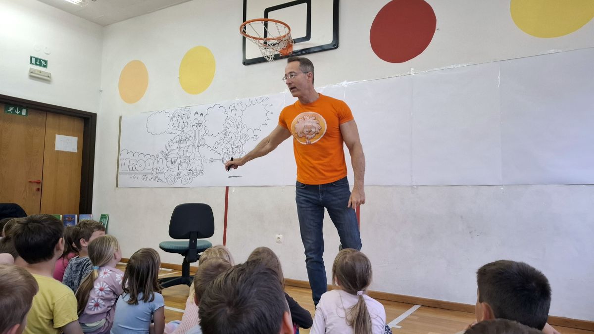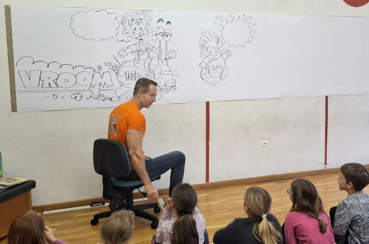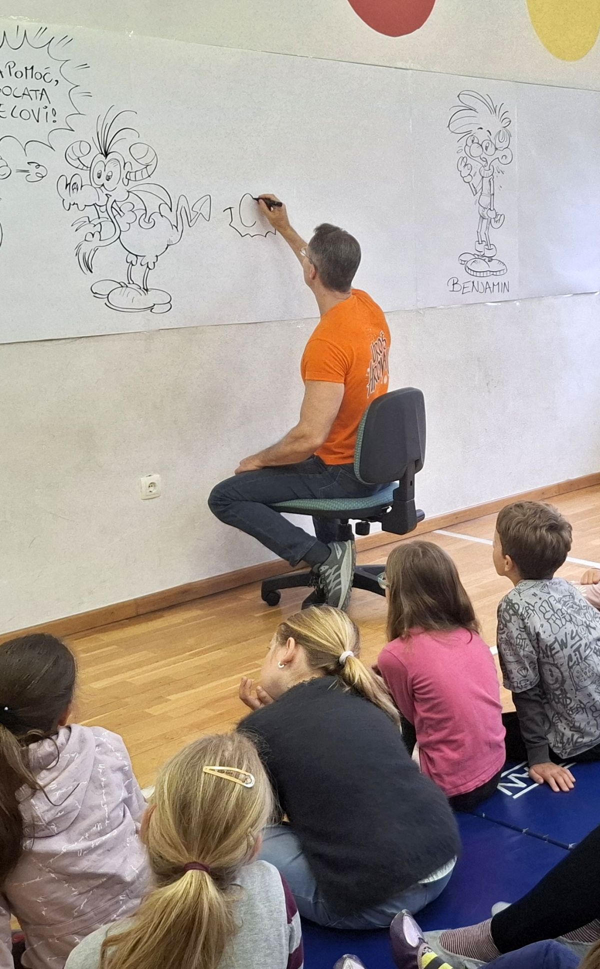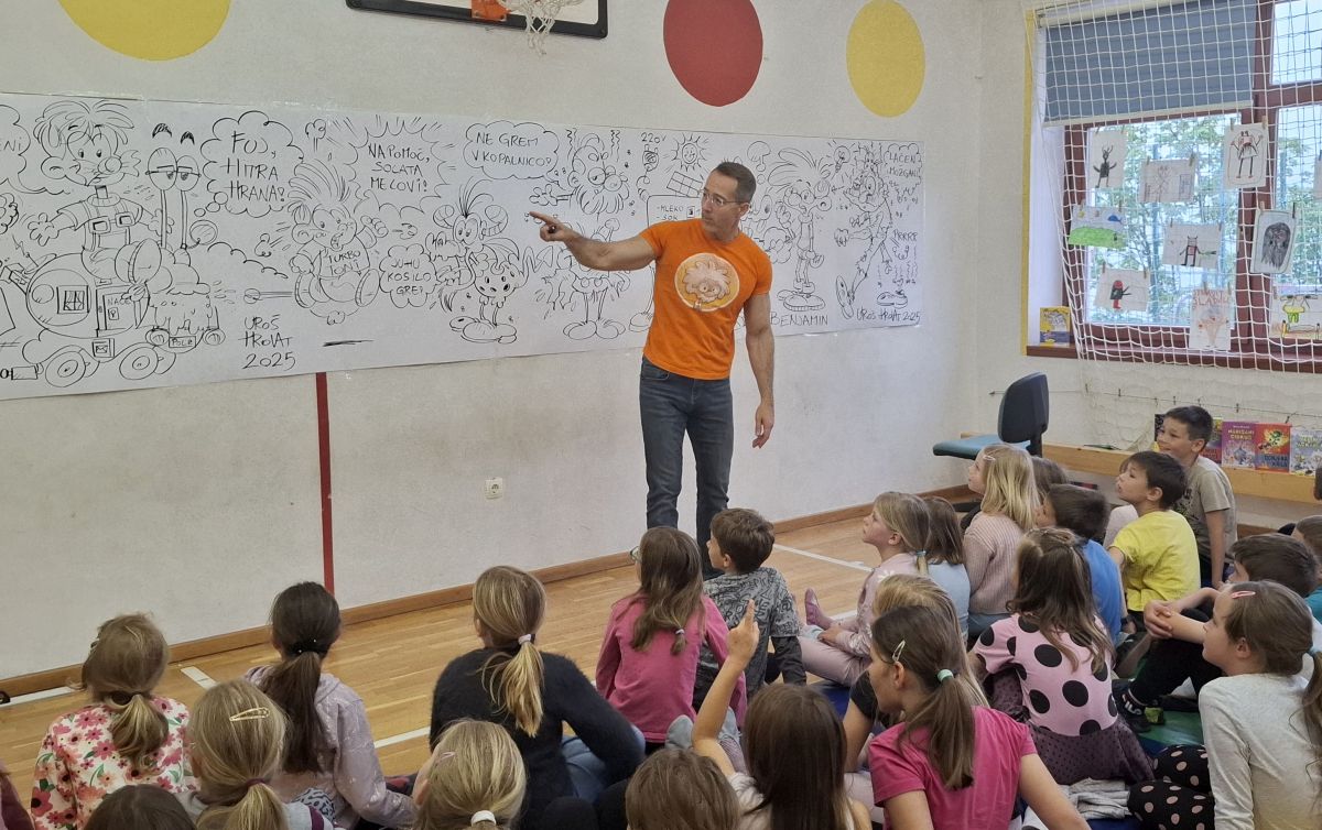 Učence, ki so uspešno zaključili bralno značko, je obiskal znani ilustrator Uroš Hrovat. Vse, kar je potreboval, je bil ogromen bel list papirja, črn flomaster in že so oživeli liki iz najrazličnejših zgodb. Gospod Hrovat je povedal, da je imel po več letih ustvarjanja za otroke že dovolj risanja prikupnih živalic in se je zato sam podal v pisateljske vode ter začel pisati zgodbe o stvareh, ki jih je želel risati. Prva izmed njegovih knjig je tako bila Zombi virus.