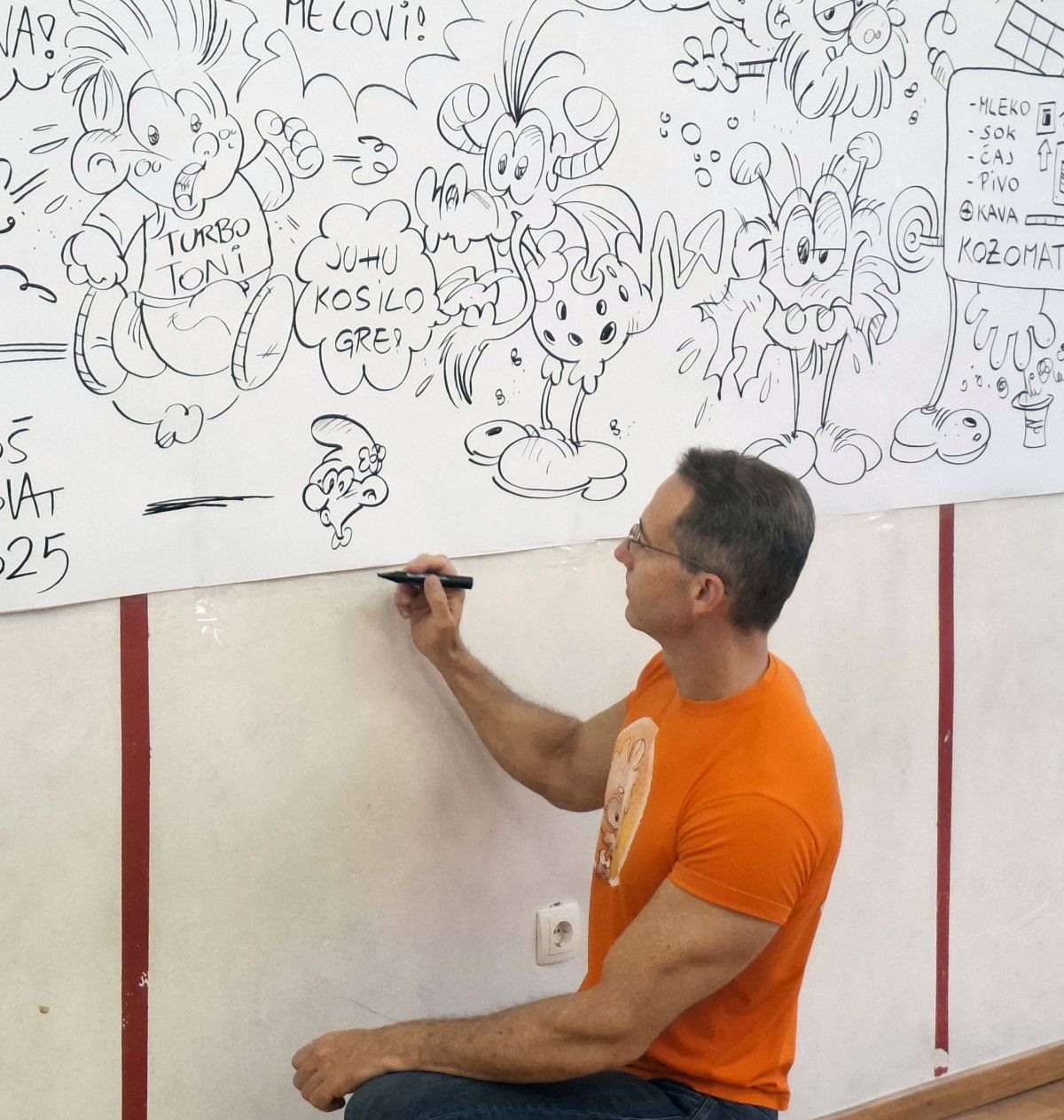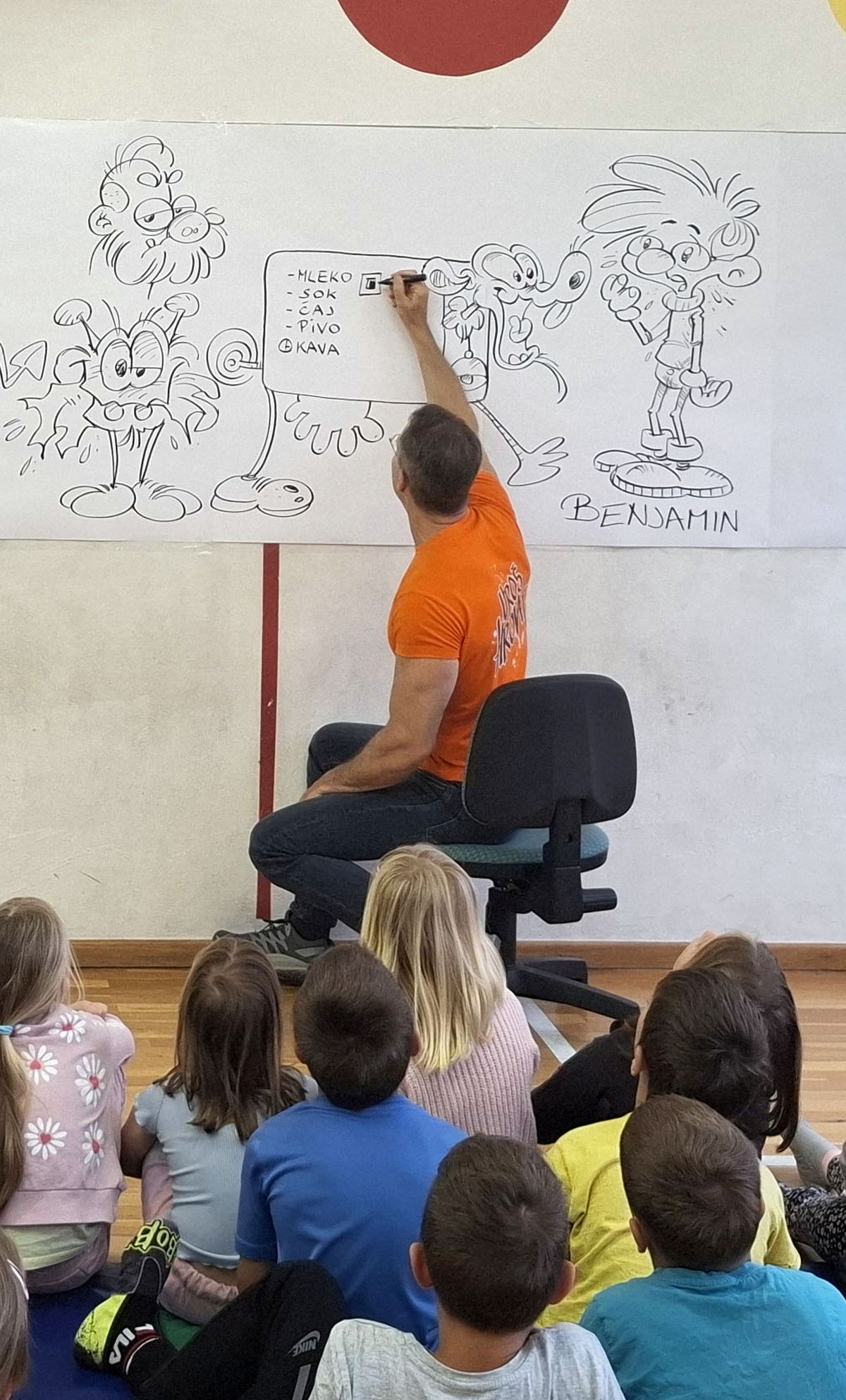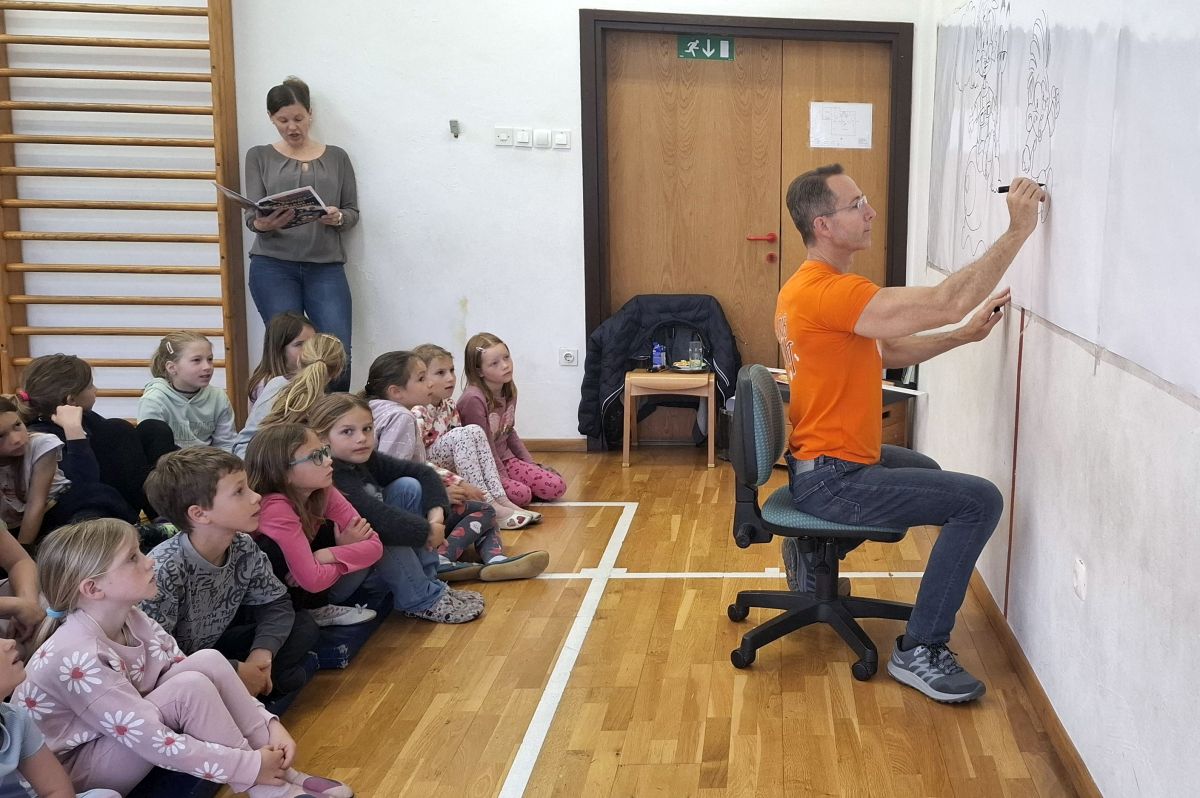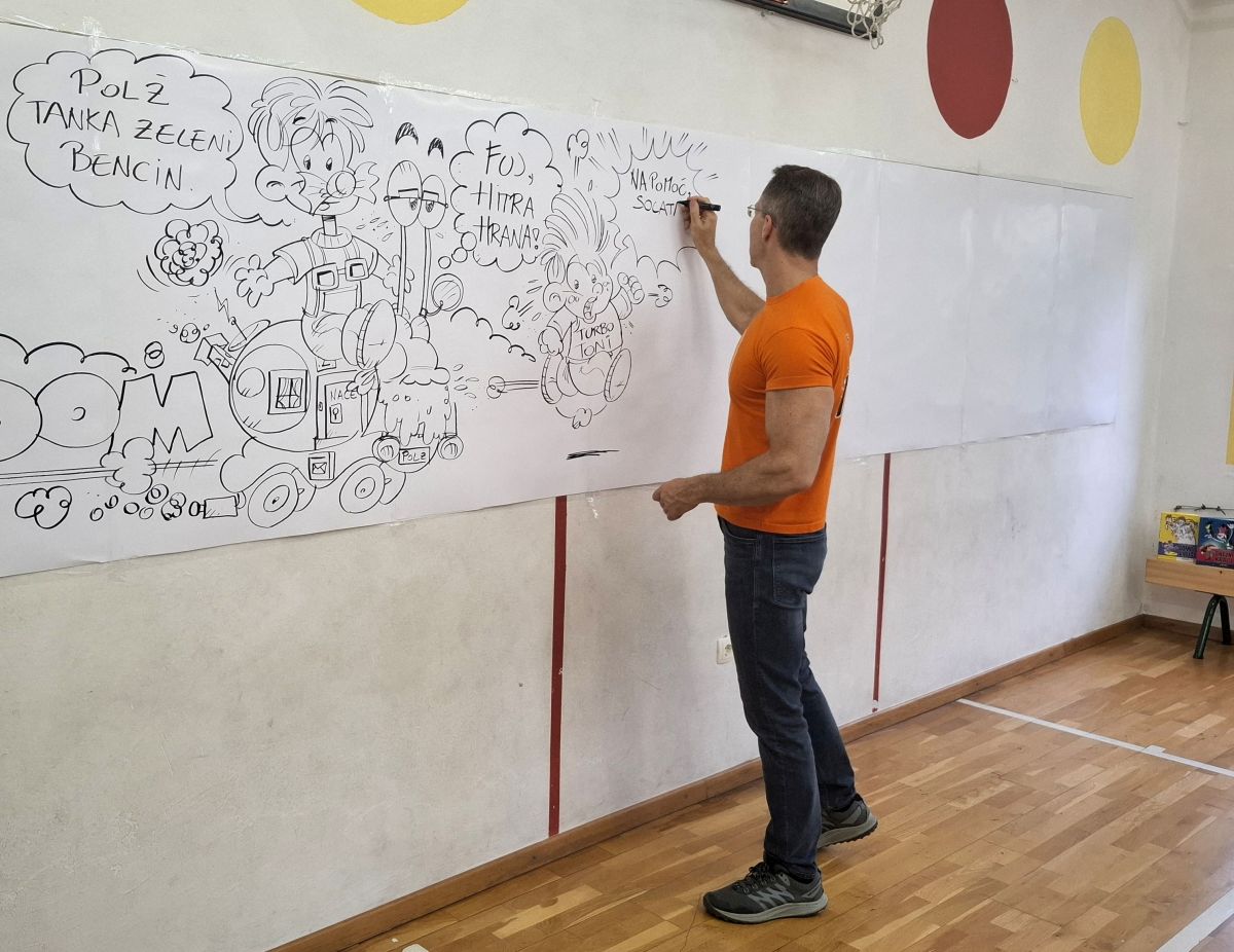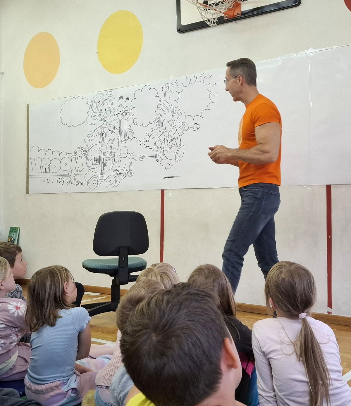 Učence, ki so uspešno zaključili bralno značko, je obiskal znani ilustrator Uroš Hrovat. Vse, kar je potreboval, je bil ogromen bel list papirja, črn flomaster in že so oživeli liki iz najrazličnejših zgodb. Gospod Hrovat je povedal, da je imel po več letih ustvarjanja za otroke že dovolj risanja prikupnih živalic in se je zato sam podal v pisateljske vode ter začel pisati zgodbe o stvareh, ki jih je želel risati. Prva izmed njegovih knjig je tako bila Zombi virus.