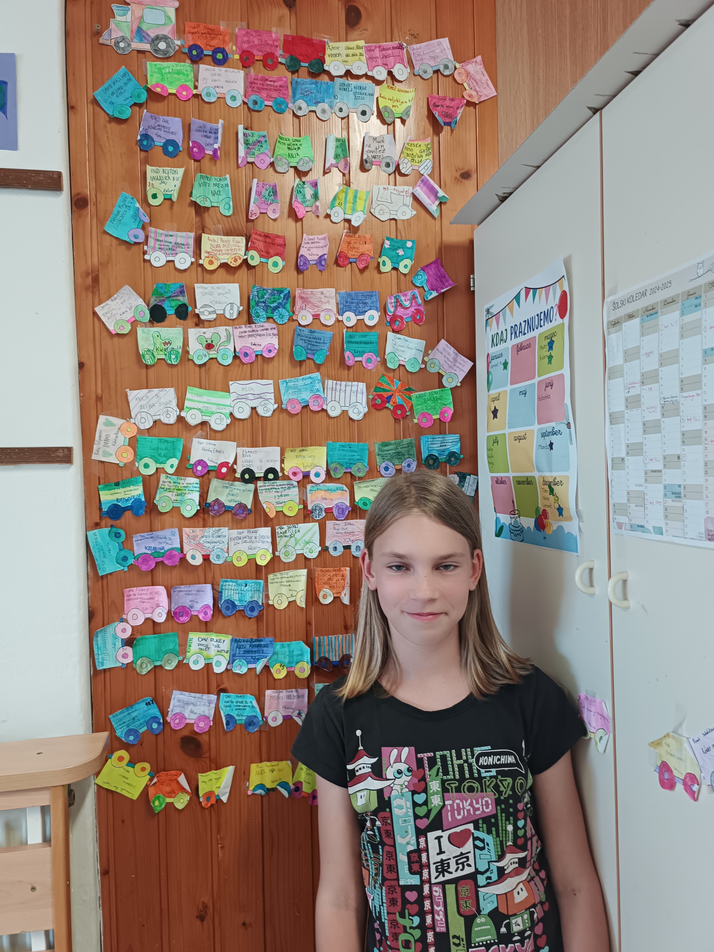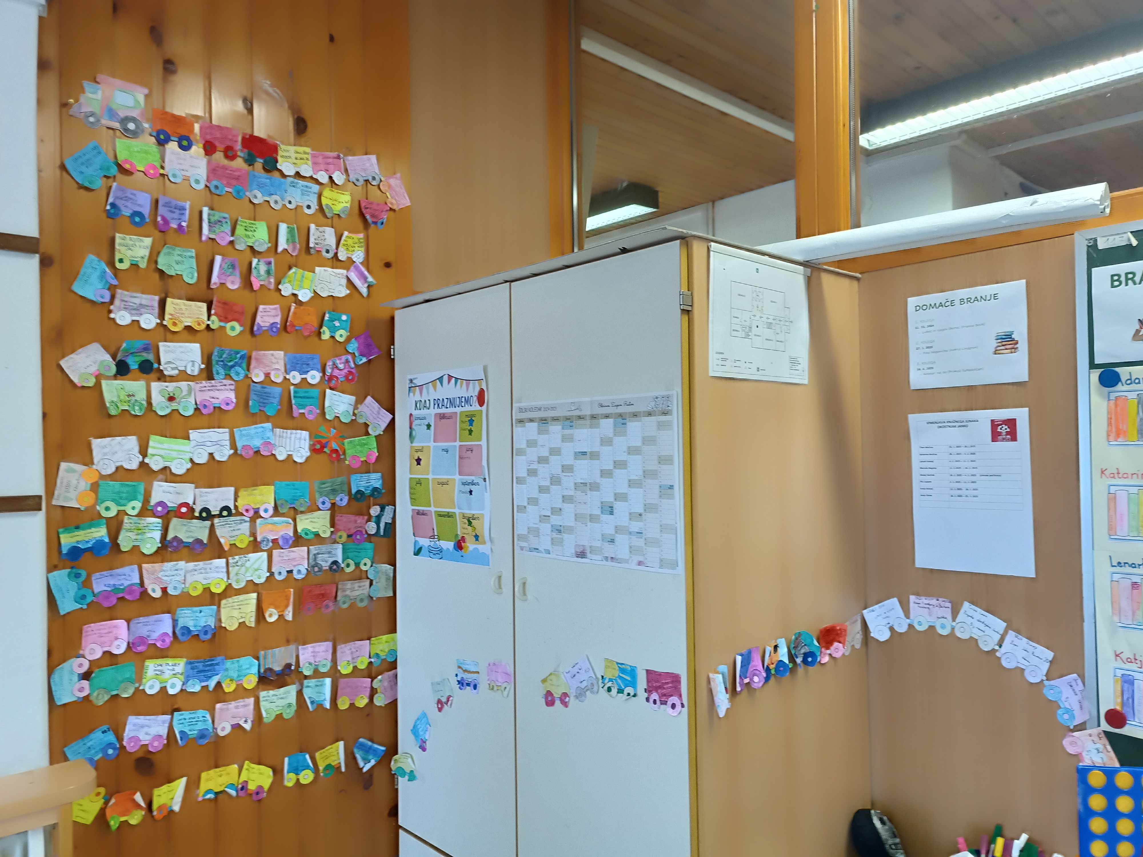 V okviru projekta Naša mala knjižnica smo od septembra pa do konca meseca maja sestavljali razredni bralni vlak. Za vsako prebrano knjigo je učenec pobarval en vagon vlaka in nanj napisal naslov prebrane knjige.