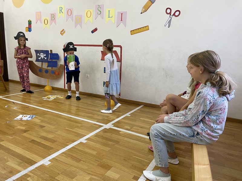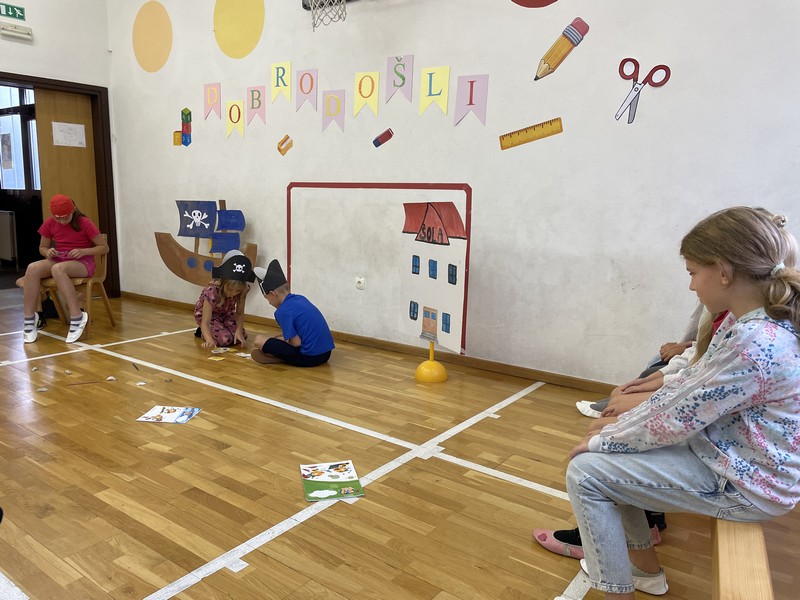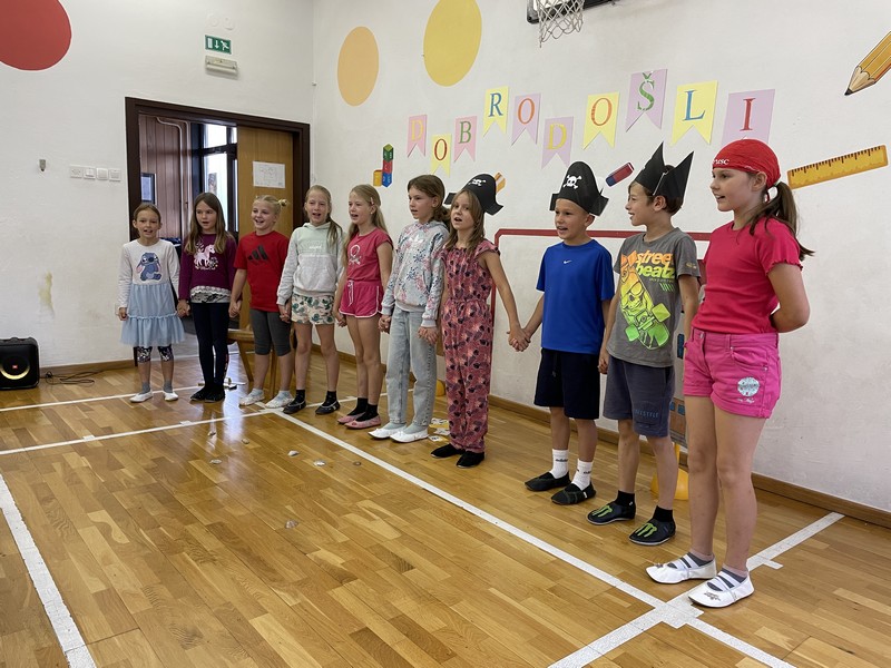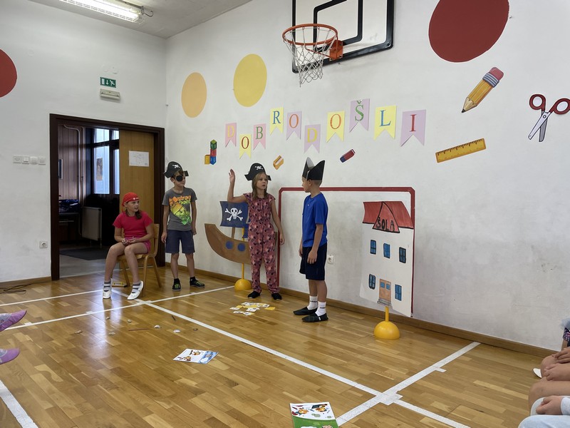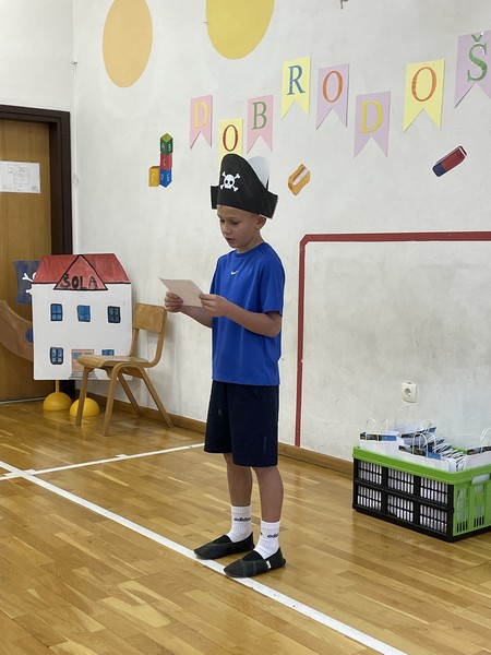 V letošnjem šolskem letu je prvič šolski prag naše podružnice prestopilo kar 16 prvošolk in prvošolcev. Zanje smo pripravili predstavo o gusarju Jakcu, ki je želel iti v šolo. Nagovorili so jih tudi g. ravnatelj, g. župan, g podžupan in g. policist. Naša gusarska družina jih je pospremila v razred, kjer so veseli in polni navdušenja nadaljevali dopoldne.