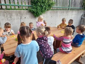 Otroci so se preko igre in vodenih dejavnosti tekom celega tedna še bolje spoznali med seboj, se družili in navezovali prijateljske odnose ter utrjevali uporabo vljudnostnih izrazov.