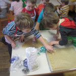 Na dan, ko goduje Lucija, smo posejali božično žito. Ker je v igralnici toplo, nam je zelo hitro vzkalilo.
