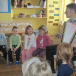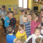 Prisluhnili smo zvokom harmonike in se seveda zraven še zavrteli- obiskala sta nas harmonikarja Janez Dolenc in Blaž Oblak. Najmlajši so še posebno uživali.