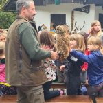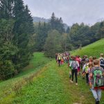 Letošnji gostitelji so bili učenci in učiteljice PŠ Šentjošt, ki so nam pripravili zanimiv pohod z lovci LD Šentjošt. Po uvodnem nagovoru ravnateljice OŠ Polhov Gradec in vodje PŠ, nas je pot vodila do lovske koče, kjer so nas pozdravili lovci in nam predstavili njihovo delo in živali, ki živijo v gozdovih v naši okolici. Z zanimanjem smo prisluhnili zanimivostim in pobožali nagačene živali.