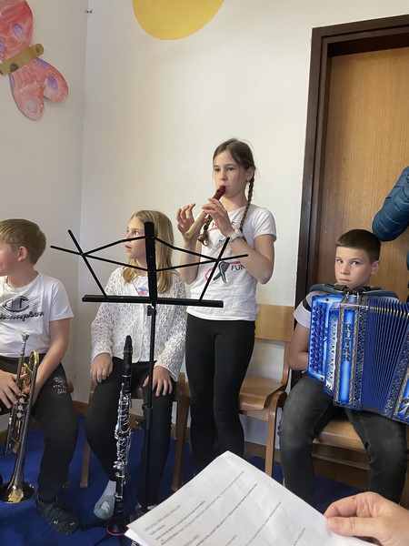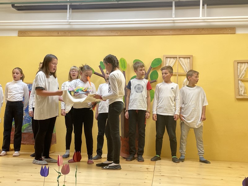 Učenci smo s petjem in plesom obogatili predstavo. Veseli smo bili obiska naših staršev, starih staršev, bratcev, sestric, …